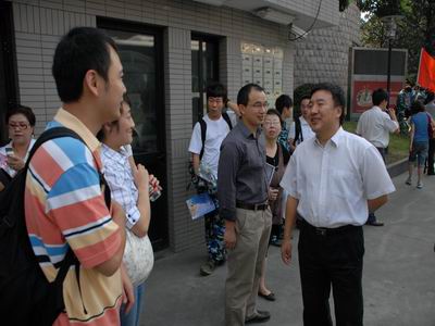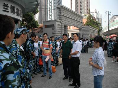 9月9日一早,表演系09级新生早早的在延安路门口集合,准备参加为期10天的军训生活。系主任龙俊杰老师到场为同学们送行。院党委书记楼巍,主持工作副院长韩生也到场与同学们见面,并向带队老师了解学生情况。