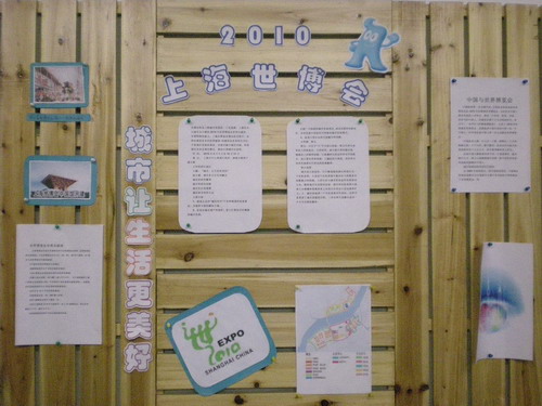 本次板报在“专业学习”等常规主题之外,特别增添了“世博”主题,不少班级都以图片、文字介绍了世博会的历史,上海举办世博的意义与已作的规划。板报上色彩斑斓的图片文字,丰富多彩的内容,吸引着同学的眼球,也开拓了大家的眼界。