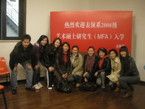 2008年3月22中午12:30,表演系举行08级MFA开学典礼。表演系主任龙俊杰,副主任何雁,党支部副书记王学明老师,表演系教授范益松老师,以及06、07级MFA和MA的同学也参加了典礼。典礼由何雁老师主持。