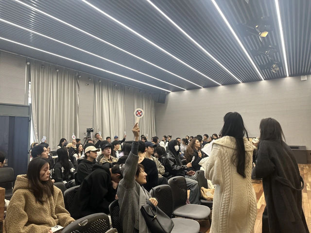 紧随其后,在11月6日上午,2024级的同学们也迎来了他们大学生涯中的首次台词月考。此次考试同样吸引了校领导和教师的关注,上海戏剧学院党委书记谢巍更是亲自莅临考场进行考察。考试内容既检验了同学们在台词基本功方面的水平,又考察了他们的情感表达和舞台表现力。同学们通过绕口令或贯口等形式,展示了他们两个月左右台词课程学习和课后练习的成果。评委们同样通过举牌示意评判结果,整个考场弥漫着紧张而又不失蓬勃朝气的氛围。