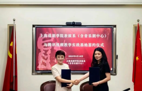 2025年9月18日上午,上海戏剧学院表演系(含音乐剧中心)与腾讯视频教学实践基地签约仪式在佛西楼举行。上海戏剧学院表演系(含音乐剧中心)主任肖英、教务处副处长(主持工作)李世涛、腾讯视频影视内容制作部副总经理方芳等出席活动。上海戏剧学院表演系(含音乐剧中心)党总支书记朱锋主持活动.