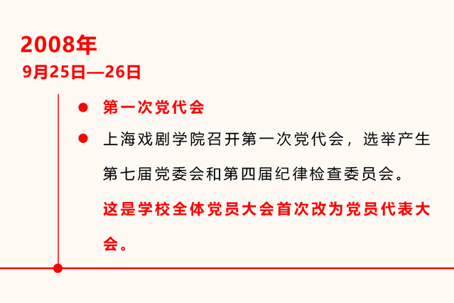 让我们一起通过下表,盘点上海戏剧学院迄今为止召开过的历次全体党员大会和党员代表大会。