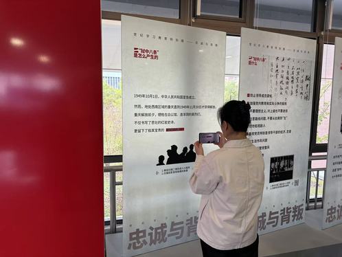 创意学院党总支在昌林路校区建设了党建思政文创角。先前已建成的一期,主要功能是红色文创实物展示区、党建书籍资料阅览区以及中国共产党百年奋斗历程展示墙。正在建设的二期,功能是创意学院数字红色文创示范区,此次以AR方式呈现的《忠诚与背叛——“狱中八条”的由来及历史警示》将作为常设展,在党建思政文创角(二期)长期进行展示。