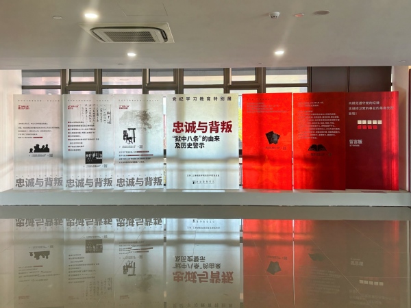 近期,由上海戏剧学院创意学院党总支策划制作的党纪学习教育特别展《忠诚与背叛——“狱中八条”的由来及历史警示》,在昌林路校区创意学院党建思政文创角(二期)拉开了帷幕。