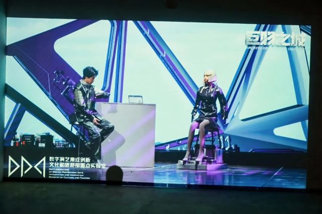 “数智·光影”展区共计展出作品18件,涵盖XR、MR、动画等多种形式,观众在其间能感受到科技与艺术融合带来的沉浸式的互动体验。在张敬平教授携数字艺术设计专业学生创作的MR作品《黛玉葬花》中,观众通过混合现实“传送门”技术,步入虚拟园林,与经典越剧片段实时互动。在数字媒体艺术专业学生谢思忆制作的互动装置《谢谢参与》中,观众则体验了一场充满戏剧幽默的“命运抽奖”,反思算法时代下的随机与掌控。国内首部机器人戏剧《巨物之城》、人工智能戏剧《微秒间》的精彩集锦也将在展览中呈现,集中展示了智能表演领域的开创性探索。