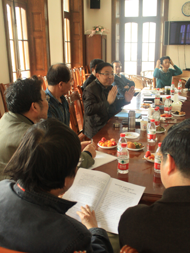 4月17日下午14:30,我校党委书记楼巍、院长韩生、副院长刘志刚、黄昌勇、宫宝荣、校学术委员会主任叶长海教授、舞美系王邦雄教授及科研处、教务处、督导办、人事处、财务处、国际交流中心等部门的相关同志在我校老干部活动室召开会议,讨论关于市教委“085工程”项目申报事项。会议由韩生院长主持。