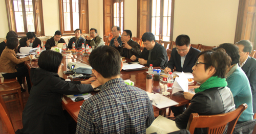 4月17日下午14:30,我校党委书记楼巍、院长韩生、副院长刘志刚、黄昌勇、宫宝荣、校学术委员会主任叶长海教授、舞美系王邦雄教授及科研处、教务处、督导办、人事处、财务处、国际交流中心等部门的相关同志在我校老干部活动室召开会议,讨论关于市教委“085工程”项目申报事项。会议由韩生院长主持。