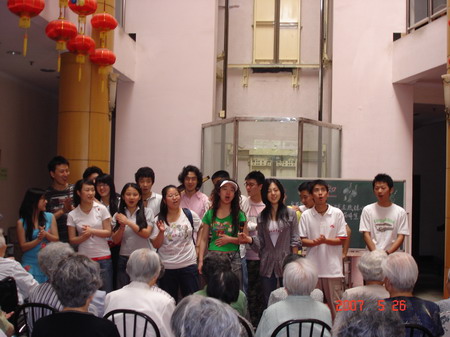本次活动由导演系06班团支部倡议,联合表05团支部联合举办的。表导演的同学们为老人们精心准备了许多精彩的节目,有相声、歌舞、合唱、朗诵,还有游戏互动,同学们精彩的演出和天真的笑容为老人家们送去了欢声笑语,老人们都很高兴。