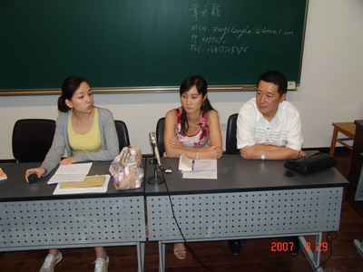 8月28日晚6点,导演系在红楼207举行了2007级新生座谈会。会议由系办公室主任季强老师主持,系党支部书记眭慕蛟老师、导07班主任张佳蕾老师和学生党支部书记章文颖老师参加了会议,并为同学们作了入学教育和军训动员。