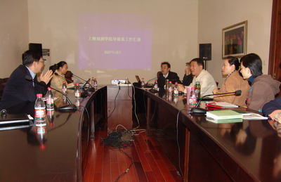 卢昂老师先作了导演系近期工作汇报以及08年的规划,眭慕蛟书记结合十七大会议精神进一步总结了导演系近期的工作成果。然后青年教师章文颖和潘雨汇报了学生原创基地和新媒体创作项目的工作计划。