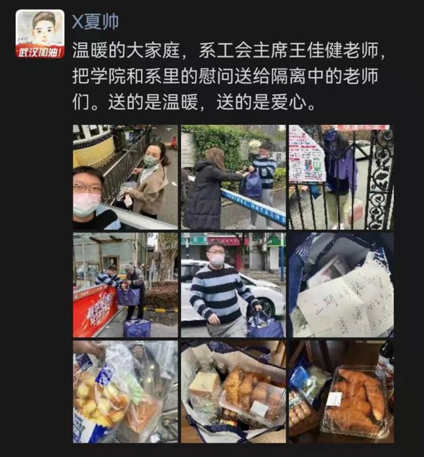 天气虽然阴冷,但抵挡不住导演系党总支对各位教师的暖心关爱。老师们拿到佳健老师送来的“爱心包”后激动不已,纷纷表示辛苦了,并为我们这位特殊的快递小哥送上了五星好评。佳健老师说:“不辛苦,反而很快乐️,盼春来!如果我被封闭,老师们也会给我送的。大家有什么需要尽管跟我说,别客气,周四我还可以送。”