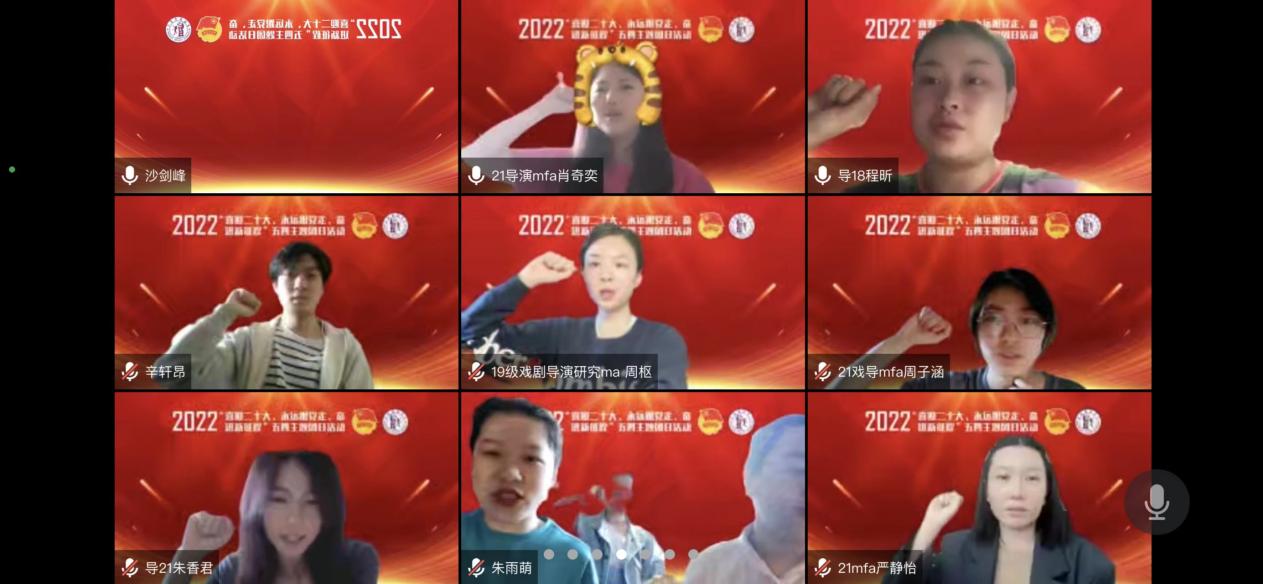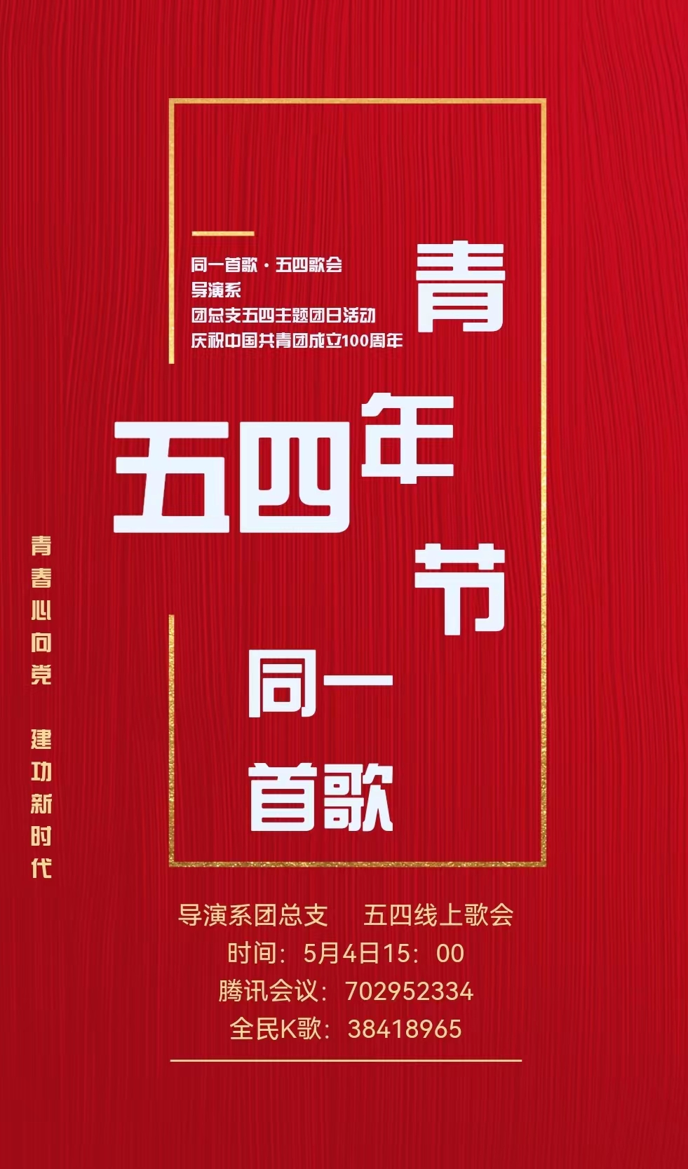 五月春风情深意暖,五月花海流溢飘香。为纪念“五四”运动,庆祝中国共青团成立100周年,引导青年学生勇作时代先锋,5月4日下午3点,导演系团总支特举办“青春心向党,建功新时代”同一首歌----五四线上歌会。导演系负责人卢昂教授,导演系党总支书记尹悦蓉老师,导演系学生党支部书记、团总支书记、专职辅导员夏帅老师和部分班级班主任老师在腾讯会议和导演系本硕博全体青年学生一同参加了此次活动。
