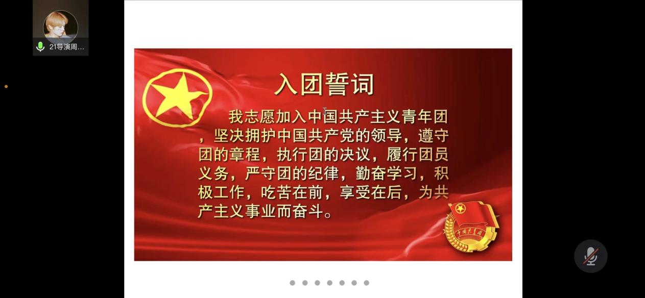 紧接着在夏帅老师的主持下,同学们进入到了重温入团宣誓誓言的环节。大家打开摄像头,每个同学耀眼的红色背景构成了振奋人心的画面,这一抹抹红色是中国的颜色,青年热血的颜色!“我志愿加入中国共产主义青年团......”,宣誓时,每一个人的眼睛里都充满了身为共产主义接班人的希望和光芒。