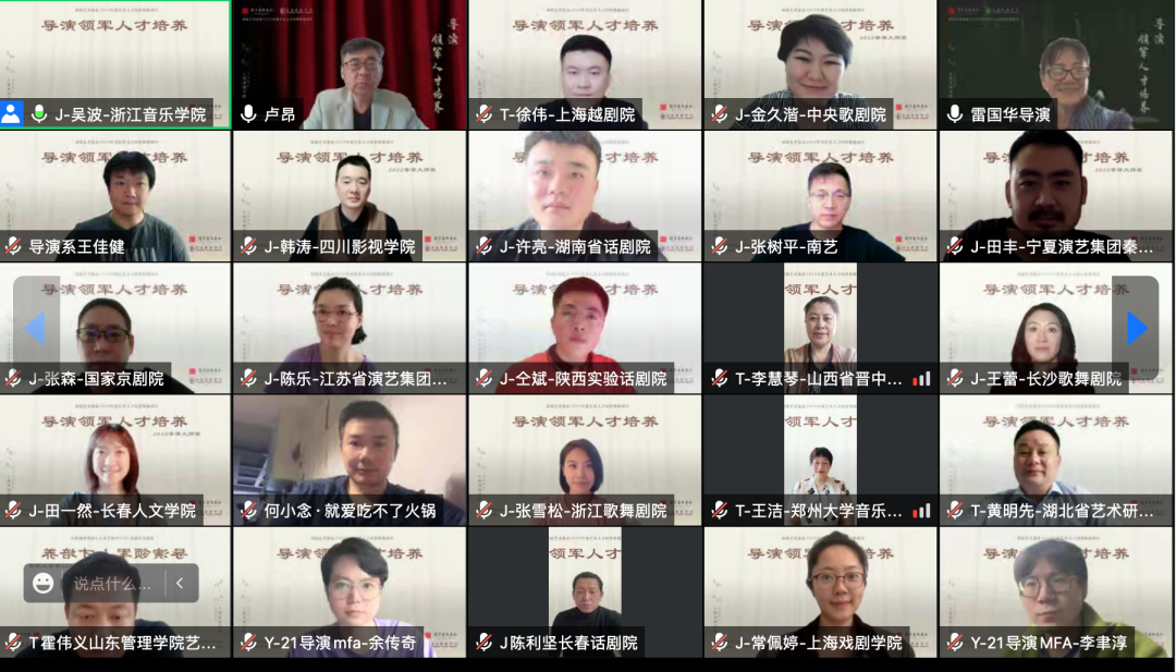 2022年5月16日-5月21日,国家艺术基金艺术人才培养资助项目《导演领军人才培养》第二阶段课程圆满结束。激情澎湃的雷国华导演聚焦“导演原创力”点燃每一位学员内心的创作冲动;德高望重的陈薪伊导演以自己丰富的戏剧人生畅谈导演艺术创作中的“选择与表达”;学识渊博的杨扬教授展开了一场别开生面的“李健吾与戏剧批评”讲座;中国国家话剧院院长田沁鑫导演则围绕着《北京法源寺》探索当代中国戏剧的创新之路;诗情画意的伊天夫教授则用科技和舞台美术描绘了一条开启舞台美术“科创融合”的新路径。