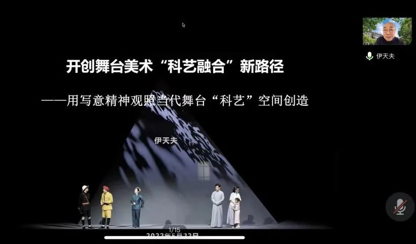 5月22日下午,上海戏剧学院舞美系主任、教授、博导、中国舞美学会副会长伊天夫为学员们做了题为《开启舞台美术“科创融合”的新路径》的专题讲座。在讲座中,伊天夫教授从四个方面系统阐述了科技与舞台美术的融合,包括科技手段为艺术创造当代艺术形式、创造事业新观念、承载舞美语言、创造当代剧场艺术力量,展现人物心理动作空间、创造诗情画意的舞台场面,创造剧场哲理诗情等方面,更强调了当代舞台美术要在“新路径”中创造“奇观”。