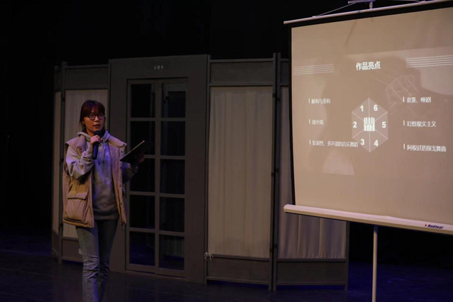 本次活动共有六个剧组参加,主创团队分别来自于导演系、戏文系、电影学院、创意学院等等的中期与毕业作品,大部分为跨院系合作项目,每位导演及制作人都进行了10-15分钟的项目介绍。第一个上台介绍的是交互式话剧《君子好》的导演石基正同学,他想做一次经典剧本与突破性的创新融合,将萧伯纳经典剧本放置在20世纪30年代老上海,创作具有本土化风格的戏剧。另外,话剧《君子好》的创新性还体现在将把观众置于重要地位,全戏将由观众决定人物的成长以及故事的脉络走向;接下来,《其实云没有那么好看》的制作人肖诗佳同学介绍了对于观众较为陌生的“特定场域戏剧”以及“疗愈工作坊”,同时,她对于合作伙伴的能力和匹配度也提出了一些自己的看法,她希望演员关心人和自然并有较好的塑造力和即兴能力,并期待和创作和制作团队碰撞出更多的火花;导演余传奇同学用剧中的台词“你想要真正的生活,而这代价不菲”展开了对于《代价》这部戏的介绍,他吸收了布莱希特的陌生化手法并进行辩证思考,整体创作风格确定为“间而不离”,他强调这样的表演方法能够增强演出的社会性并引发人对于过去和未来的思考;《有一种毒药》是曹禺女儿万方的著作,导演文滔选择将这部戏作为自己的毕业作品一方面是由于自己亲身经历的贴合,另一方面他认为这出戏触及了人的痛点,引起了“我们应该要如何生活”的心里隐痛,反应了传统与现代夹缝中的人们的无所适从;音乐剧《太空游泳池》讲述了一个科幻的故事,导演罗悦利想要在比较荒诞甚至偏科幻喜剧的作品中提出一个小小问题,便是如何与这个荒诞的世界共存,导演将对生活物件进行提取和变形,用糖果色冲淡刻板印象中未来的冰冷感和机械感,呈现出温暖复古的质感,导演希望演员能了解乐器或者说对演奏乐器有兴趣,这样更有助于去辅助建立乐队音乐形象,另外也会有老师帮助大家进行入门级训练;《隧道》这个作品改编自阿根廷作家埃内斯托的小说,男主角的形象具有典型性,其辐射出了现在年轻人深陷存在主义的现状,导演将男主人公解构,设置两个男主,本性欲望和理性逻辑拆分成为两个双面并尝试用双簧手段演绎。这样戏中戏的模式,揭示了当代人的困境。