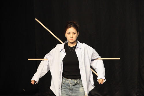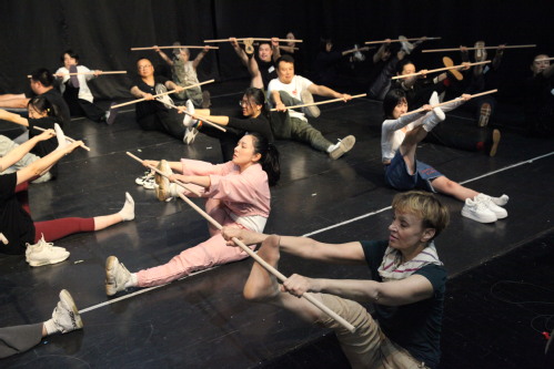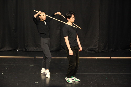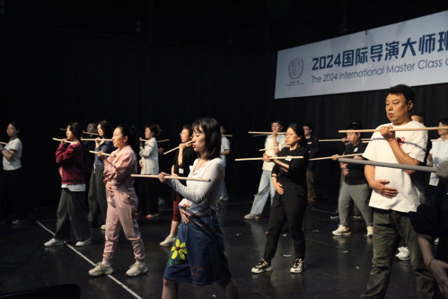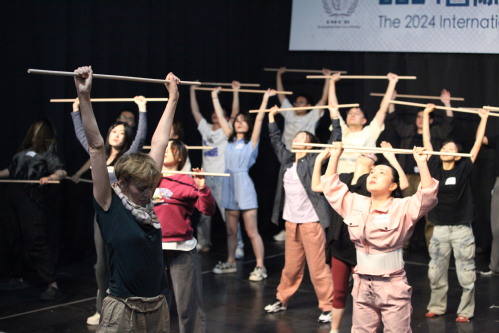 6月1日上午,卢昂教授带领学员们对本周的教学内容进行总结回顾。通过对棍子的平衡训练,学员们学习了如何在舞台上以更加流畅、舒展的姿态来表达角色的内心世界。卢昂教授指出,舞台表演需要通过身体的动作去传达角色的整体状态,包括他们的心理活动和情感波动,而非强调面部表情,尤其不能用脸去直接表演情绪。此外,学员们凭借棍子找到了身体在舞台上的延展性,以更加宽广的能量辐射来展现角色情绪,在舞台上营造出与角色内心相呼应的氛围。棍子作为外化情感的一种方式,学员们探索了多种方法借助棍子展现角色的内心世界,让棍子成为沟通角色情感与观众感知的桥梁。
