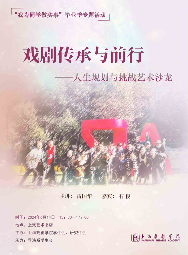 2024年6月14日,上海戏剧学院学生会和研究生会携手上戏导演系学生会,在上戏艺术书店举办了一场主题为“戏剧传承与前行——人生规划与挑战”的艺术沙龙。导演系学生会积极响应学校“我为同学做实事”项目,开展毕业季专题活动,旨在加强师生间的交流与互动,同时为上戏学子的创作和人生规划提供支持与鼓励。