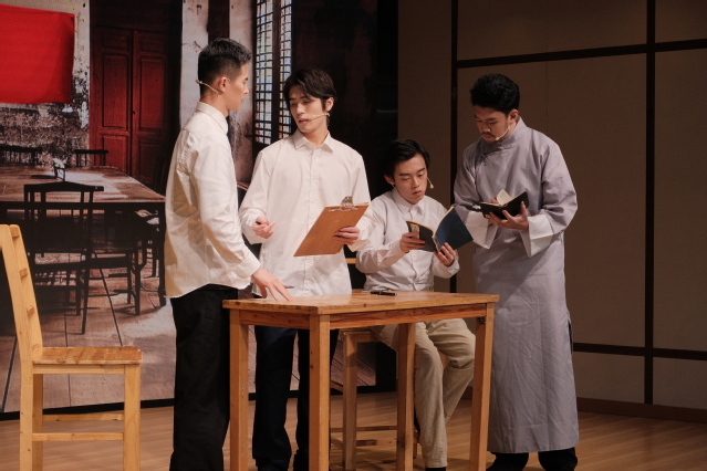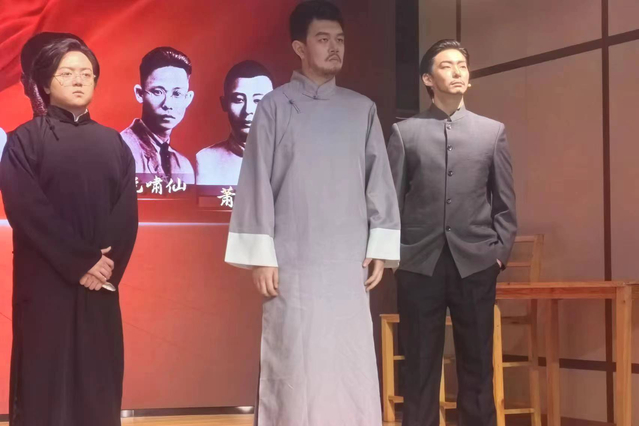 随后,由导演系党总支副书记石俊担任艺术总监,导演系学生党员范思哲导演并撰稿,预备党员余传奇担任音效执行,研究生郑国辉、本科生艾凌宇、胡孝慈、牛煜涵、陈禹豪主演,导演系研修班学员贾天下多媒体导演,本科生吕硕、李衔恩摄影摄像,及各院系近20名学生参与创排的戏剧党课《纪·念忠诚》正式开讲。该剧讲述了在动荡的20世纪20年代,中国共产党面临严峻挑战,为了加强党的纪律和团结,中共五大选举产生了中央监察委员会成员共10人,其中八人牺牲,无一叛党。本剧聚焦主席王荷波、副主席杨匏安和委员许白昊的故事,三人在烽火岁月中坚守信仰,为党的纯洁性和纪律性矢志奋斗,展现出名族英雄的忠诚与无畏,铸就了中国共产党不屈不挠的精神,激励着一代又一代人为理想而奋斗。