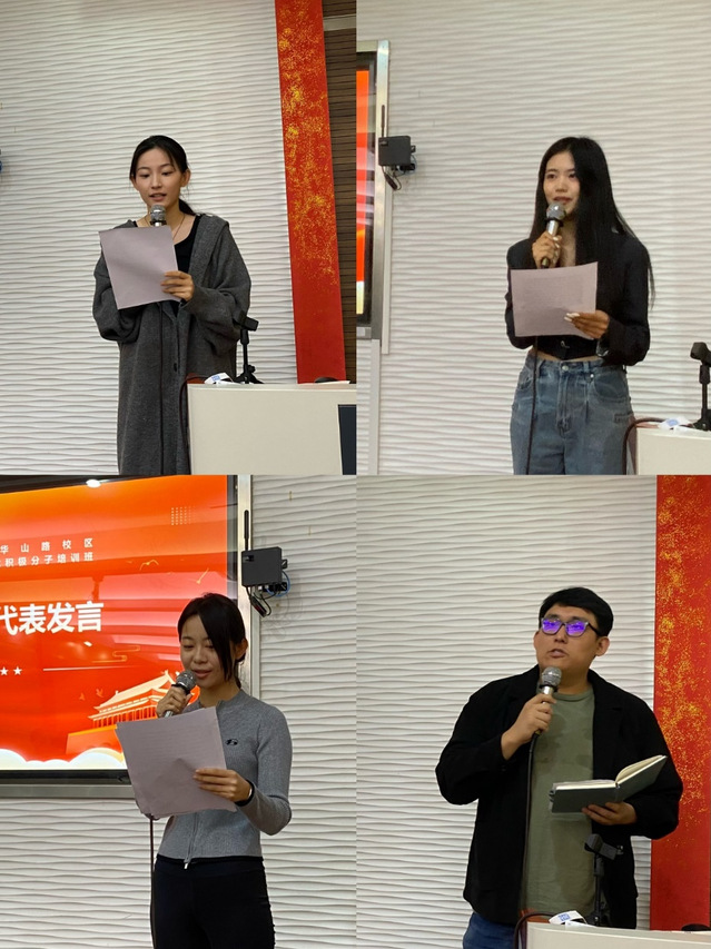 舞美系张烁同学深情感谢老师们的授课,这次党训班使她进一步明确了自己的入党初心。她回忆了本科时受到家人启发,通过学习党史逐步加深对党的认识,并在观看《烈火中永生》后,深刻感受到共产党人的坚定信念和奉献精神。进入研究生后,她郑重向舞台美术系学生党支部递交入党申请书,坚定了自己加入中国共产党的决心。通过培训班丰富的课程学习,她意识到要进一步严格自我要求,锤炼党性修养,做到与党同心、与党同行;在深入习近平文化思想的理论课程和创新实践案例后,她认识到做有深厚人民情怀文艺工作者的重要性,坚定了为建设文化强国贡献力量的决心。