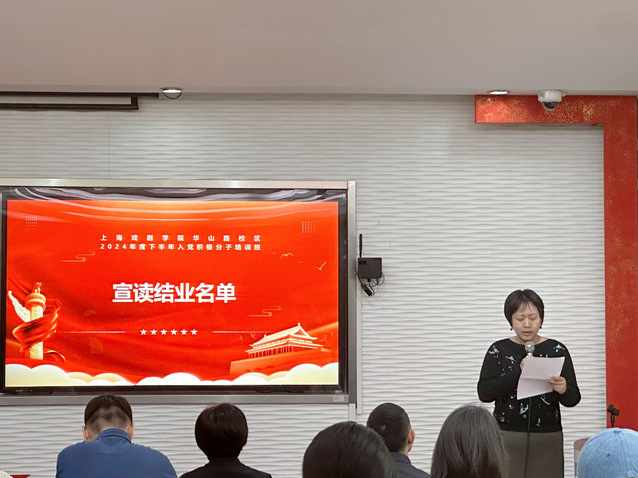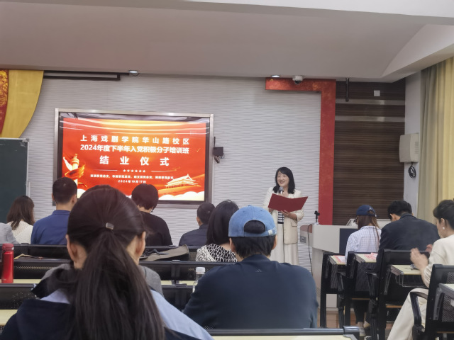 为深入学习习近平新时代中国特色社会主义思想,践行习近平文化思想,扎实做好新时代党员发展工作,表演系党总支、导演系党总支、戏文系党总支和舞美系党总支近期开展2024年下半年入党积极分子培训班。2024年10月17日中午,华山路校区(四院系)2024年下半年入党积极分子培训班在红楼209顺利举行结业典礼。参加本次结业典礼的有上海戏剧学院党委副书记胡敏老师,党委组织部部长、人事处处长、党委教师工作部部长刘春友老师,党委组织部副部长、党委组织员曹颖老师,导演系党总支书记尹悦蓉老师、表演系党总支副书记朱锋老师、舞美系党总支副书记孙蕾老师、四院系辅导员老师和27名入党积极分子,结业仪式由戏文系党总支副书记陈莹老师主持。