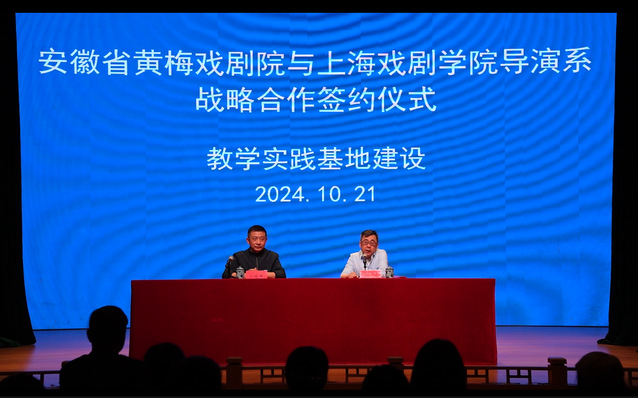 20241021,安徽省黄梅戏剧院与上海戏剧学院导演系成功签订战略合作协议,共同建立教学实践基地推动学校“一引三融”建设体系落实落深,强化思政引领,推进专业融汇、科艺融合、产教融,培养适应新时代需求的戏剧艺术人才。安徽省黄梅戏剧院党总支书记、院长方峻上海戏剧学院导演系负责人卢昂代表双方签署协议。