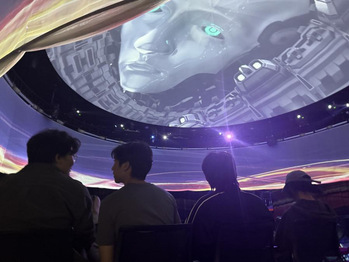 首先,同学们走进了数字演艺集成创新文化和旅游部重点实验室XR穹顶环幕实验剧场,40台投影仪打造出全景式投影空间,带来震撼的视觉效果,国内首部机器人戏剧《巨物之城》曾在此上演。
