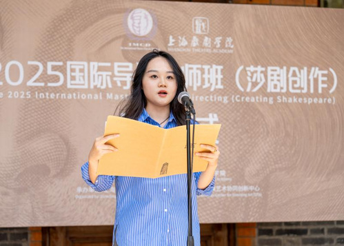 导演系研究生郑婧璇代表学员发言,感谢学院搭建国际交流平台。她表示,本届大师班将深入探索中国传统戏剧美学与当代莎剧创作的融合,学员们将以专业态度投入学习,在多元文化碰撞中开拓戏剧视野。