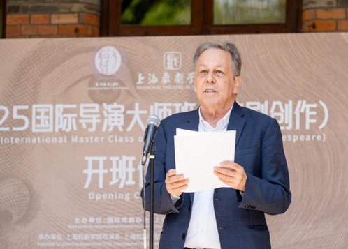 上海戏剧学院2025国际导演大师班(莎剧创作)于5月12日上午10:30在佛西楼前广场举行开班仪式。上海戏剧学院院长黄昌勇,国际剧协总干事托比亚斯,本届大师班授课教师代表迈克尔·弗莱博士,导演系领导、师生以及大师班学员等出席了此次开班仪式,开班仪式由上海戏剧学院副院长刘庆主持。此外,第十六届亚太戏剧院校联盟副主席李昂·儒本教授将在下周莅临大师班进行授课。