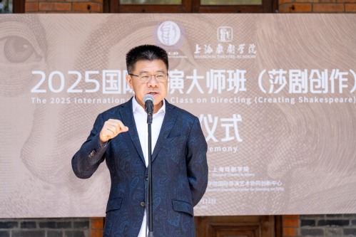 首先,国际导演大师班项目负责人卢昂教授,代表承办方上海戏剧学院导演系对各位领导、嘉宾和学员们的到来表示热烈的欢迎和感谢,并对大师班的创办初心及基本情况进行了介绍。卢昂教授表示,本届大师班以莎士比亚戏剧为主题,集结来自全国各专业院团的导演、演员,各艺术院校教师及上海戏剧学院导演系在读研究生于一堂,共同探索经典文本的当代演绎。卢昂教授特别提到,越剧《李尔王》、京剧《麦克白》等跨剧种实验作品将成为重点研究方向。他期待通过两周的密集研讨,推动莎剧艺术在跨文化语境下的创新发展。