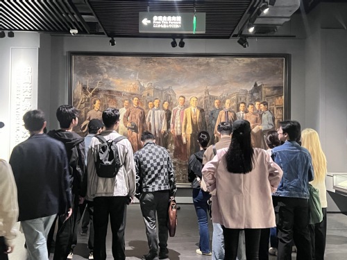 在讲解员的带领下,导演系党员师生沿着陵园步道缓缓前行,认真聆听从 1840 年至 1949 年不同历史时期英烈的感人事迹。展馆内,实物陈列、影音资料与雕塑艺术相互交融,立体呈现了革命斗争的艰辛历程。无论是面对敌人屠刀仍坚贞不屈的革命先驱,还是为了理想信念甘洒热血的青年志士,他们的英勇事迹让在场的每一个人深受震撼。导演系党员师生们驻足凝视,低声交流,在心中种下了传承红色精神的种子。