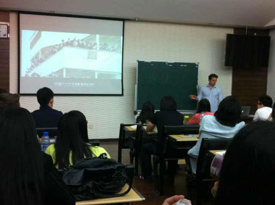 同学们在课上与琼斯先生积极互动,提出了关于音响设计和现场录音、音响剪辑和画面剪辑、音乐的选择及其和声效的配合、拟音的具体操作等等问题。琼斯先生一一予以详细解答。