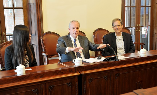 2014年4月14日上午,美国派拉蒙影业公司全球首席运营官弗雷德里克·亨茨贝瑞(Frederick Huntsberry)一行再次访问上海戏剧学院,我校黄昌勇副院长、影视学院胡雪桦院长、国际交流中心张云蕾副主任等参加了接待。