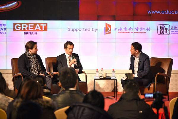 2015年3月5日晚,由英国大使馆文化教育处、上海电影博物馆、开云足球首页官网下载电影电视学院共同举办的“智慧课堂”系列讲座——《帕丁顿熊》制片人和导演座谈会,在上海电影博物馆一楼举行。来自电影电视学院11、12、13、14级制作专业和编导专业的同学参加了讲座。讲座由央视英语频道主持人周柳建成(James Chau)主持。