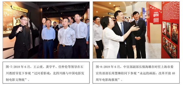 中心还注重发挥学科优势,推动将学术研究转化为公共文化产品,为社会提供智力服务。2014年6月,中心为上海电影博物馆策划“电影是我的生命:汤晓丹、蓝为洁文物精品展”,荣获2015年度上海文物局“博物馆陈列展览推介精品奖”;2015年,中心参与“车墩影视基地二期建设工程规划”项目,为影视基地产业升级出谋划策;2017年6月,为上海海派文化中心策划“过河看影戏:北四川路与中国电影发轫”电影文物展。龚学平、周慕尧等市领导出席开幕式并参观了展览。此次展览荣获2017年度上海市文物局“博物馆陈列展览推介精品奖”,其成果汇编为图文集《过河看影戏:北四川路与中国电影发轫》,由上海书画出版社出版发行;2018年6月,为上海国际电影节策划“永远的画面:改革开放40周年电影海报展”。该展受到中宣部领导的肯定和表扬。新华社、《人民日报》、央视《新闻联播》、《焦点访谈》等国家主流媒体对展览进行了大量报道,在海内外产生了重大影响。其成果编辑为《永远的画面:改革开放40周年电影海报集》图文集,由上海书画出版社出版发行;2019-2021年,中心为横店集团策划“横店国家级影视文化产业试验区展示厅”项目,受到横店集团及产业界的一致好评。