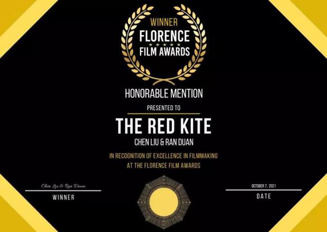 在近日揭晓的“2021年巴塞罗那国际电影节”,“佛罗伦萨电影奖”上,我校18级影视导演MFA刘晨、18级影视摄制与录音MFA段然的联合毕业创作短片《红风筝》分别获得“巴塞罗那国际电影节最佳外语短片”“佛罗伦萨电影奖荣誉短片”奖项。