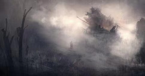 《墟》是对一位即将战死沙场的将军的写照,第一段用听感上较刺激的音色与增强氛围感的轻音吉他形成反差,轻音吉他作为pad铺垫渲染空无一人的寂寥感,最具听觉冲击的音效凸显伤亡惨重的场面使将军痛心失神的一瞬,第二段以鼓的节奏组合和笛声点缀营造出“形散神不散”的诡异氛围,描绘带领残军夜行伏击背水一战的心境,第三段以管弦乐为主,是将军赴死前对曾经征战沙场一世英名的回忆和不舍。