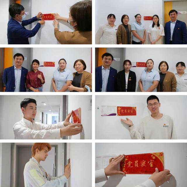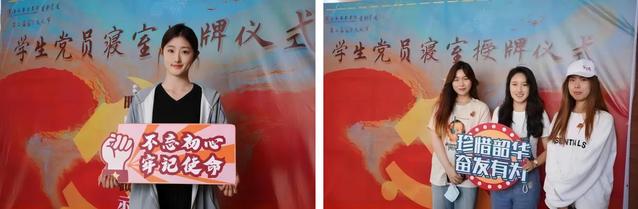 最后,电影学院党总支书记韩永胜老师、党总支副书记王春云老师前往学生社区,为学生党员代表寝室贴牌并合影留念。其余党员也是纷纷将这块象征着责任和使命的“党员寝室”之牌张贴到了各自的寝室门口。