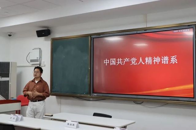 上海戏剧学院创意学院的辅导员陈龙老师主讲《中国共产党人精神谱系》。陈龙老师为大家准备了一系列影片供同学们学习,鼓励同学们学习党的精神谱系,为成为一个优秀的共产党员不懈努力。