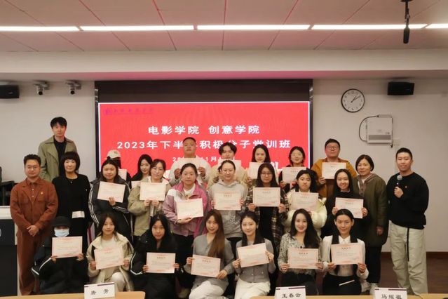 2023年11月2日,电影学院、创意学院入党积极分子党训班开班仪式在昌林路2号楼209教室举行。电影学院党总支副书记王春云、创意学院党总支副书记唐芳、创意学院学生第一党支部书记孔小磊、学生第二党支部书记陈龙、电影学院学生第一党支部书记马耀祖、学生第二党支部书记徐佳晨参加了此次入党积极分子党训开班仪式。培训班由电影学院学生第一党支部书记、本科生辅导员马耀祖老师主持。