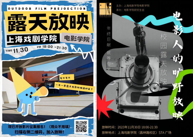 冬日来临之际,上海戏剧学院电影学院研究生会于11月30日晚在食堂旁举办了一场露天放映活动。正值上海戏剧学院78周年校庆前夕,研会为大家送上了一份温暖的陪伴。本次活动是以电影学院学生的获奖影片为主题,在这个寒冷的冬夜中,与电影共舞。