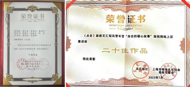 上海电视艺术家协会第三届短视频大赛暨第一届大学生短视频大赛“高校竞赛单元”十佳作品。
