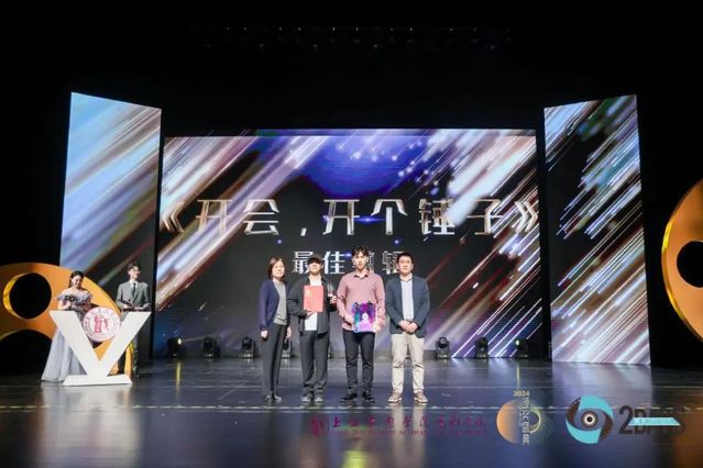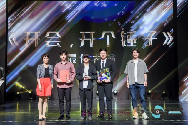 费泳主任与AME副总经理赵鸣昊为《开会,开个锤子》颁发“最佳表演奖”。