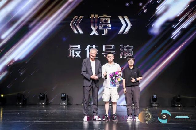 Kees Van Oostrum教授与深圳市神牛摄影器材有限公司影视租赁部市场经理张佳妍为《婷》颁发“最佳导演奖”。