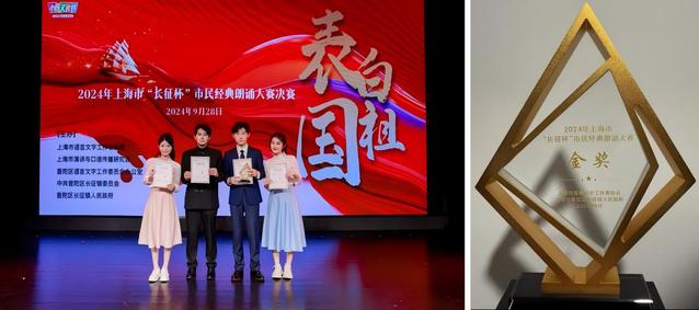 2024年上海市“长征杯”市民经典朗诵大赛中,郭书豪、陈泳而、杨宗霖、张静怡凭借合诵作品《领跑者》获得大赛金奖,在众多上海市高校中脱颖而出。充分展示了我院学子积极向上的专业精神与卓越才华,将专业知识付诸实践。