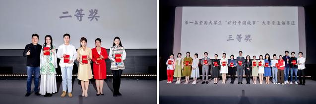在第一届讲好中国故事大会中,上戏学子以其卓越的表现在普通话赛道和方言赛道上均取得了优异成绩。普通话赛道中《强国之翼 逐梦之心》(戎珈慧)、《心中那面旗》(王子安)荣获一等奖,《三百多个孩子的老爸》(贺子洪)获得二等奖,《我哥与我歌》(郜峻堃、龚一宸、卢冠廷)获得三等奖,《大山里的小诗人》(田志豪)则获得了线上传播奖。方言赛道中《人民的村长——王新法》获得三等奖。留学生赛道中《戏··言》(姜歆曦等)荣获一等奖。