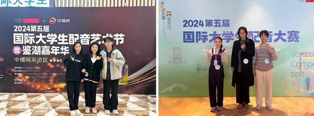 2024第五届国际大学生配音艺术节暨鉴湖嘉年华中,动漫赛道配音作品《火凤燎原》(郜峻堃)、《头脑特工队2》(曹熙、苏佳怡、高畅)、《爱、死亡和机器人》(史瑜西、马铭泽、卢冠廷)获得三等奖,影视赛道中研究生作品《风声》(李耀国、周禹含、王昌源、胥若璇)获三等奖。这些作品和获奖展现了学子们在配音领域的专业技能和创新能力,以及他们对角色声音的精准把握和情感的深刻理解。