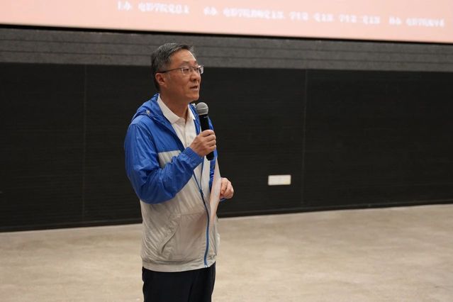 资深录音师、导师代表詹新教授结合自身经历,以“老老实实做人,踏踏实实做事”的朴素箴言勉励青年学子,特别是追求进步的党员、预备党员和入党积极分子同学,并引用毛主席名言寄语青年党员如同“早上八九点钟的太阳”,承载着国家与事业的未来希望。