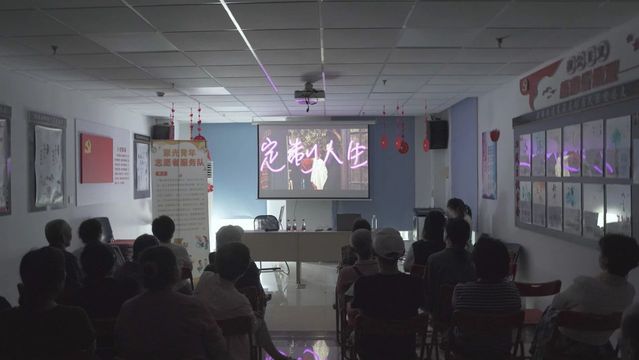 在主持人罗梦欣的导赏后,居民们一起观看了放映作品《瑶花琪树》和《定制人生》。在观看过程中,观众们为《瑶花琪树》中神秘的民族故事与真挚的亲情爱情所打动,《定制人生》中对于老年群体的关注和曲折跌宕的故事吸引了在场观众的注意力,观影过程中大家全神贯注,对片中人既熟悉又陌生,无比期待结局。