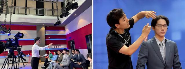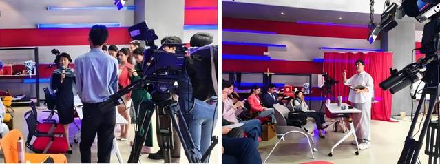 打破边界,行业深度嵌入。为破除传统模式局限,课程进行了系统性重构:突破小课边界,实施梯度教学;引入行业专家进课堂;坚持每周上镜实训,强化实战能力。大课上,邀请SMG融媒体中心首席主持人臧熹为学生们讲解融媒体时代的新闻主播素养及训练方法;会课中,三组教师毫无保留地分享各自的教学思路与教学方法;小课里,各组老师统一每周训练稿件及内容进度,保证教学科学性与统一性;录制时,教师精心打磨学生稿件播报的同时还注重主播的造型视觉美感,老师们亲自上阵以专业主播要求调整学生视觉语言表达。